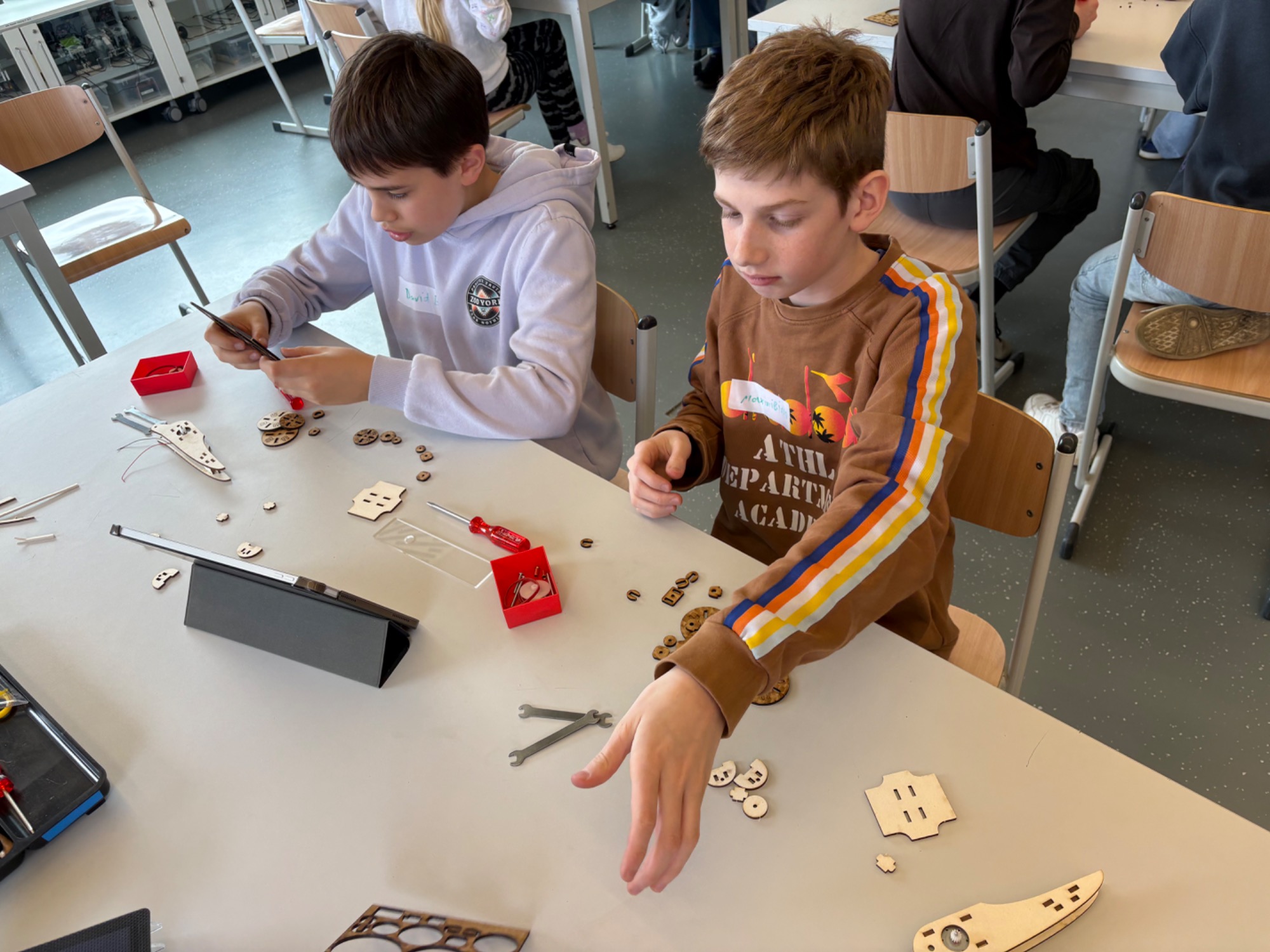 Im Fokus stand zunächst der Workshop "Bau einer Kurbeltaschenlampe" im Labor der experimenta. Hier konnten die SchülerInnen nicht nur theoretisches Wissen rund um Strom, Stromkreise und Energiegewinnung aus dem BNT-Unterricht vertiefen, sondern auch direkt selbst Hand anlegen: Mit Schraubenzieher und viel Fingerspitzengefühl bauten sie ihre eigene Kurbeltaschenlampe - eine tolle Verbindung aus handwerklicher Tätigkeit und naturwissenschaftlichem Verständnis